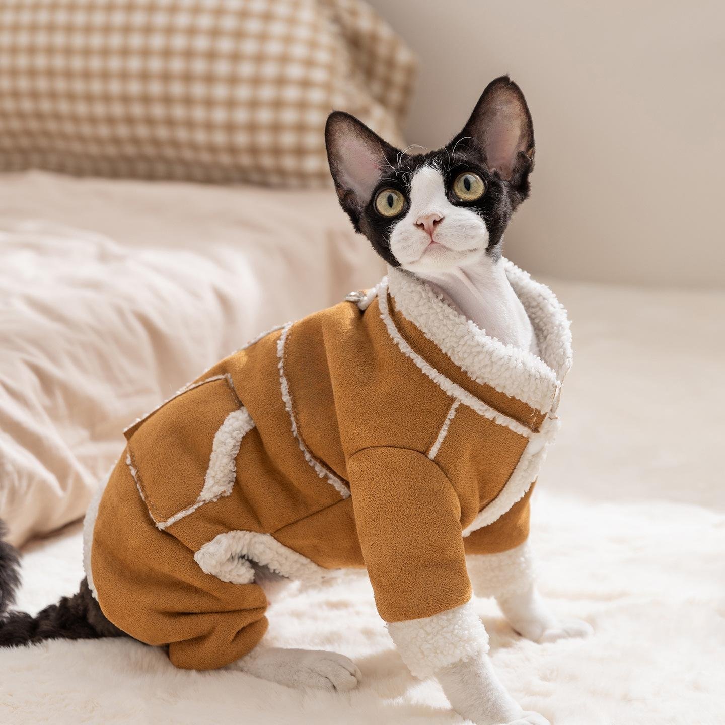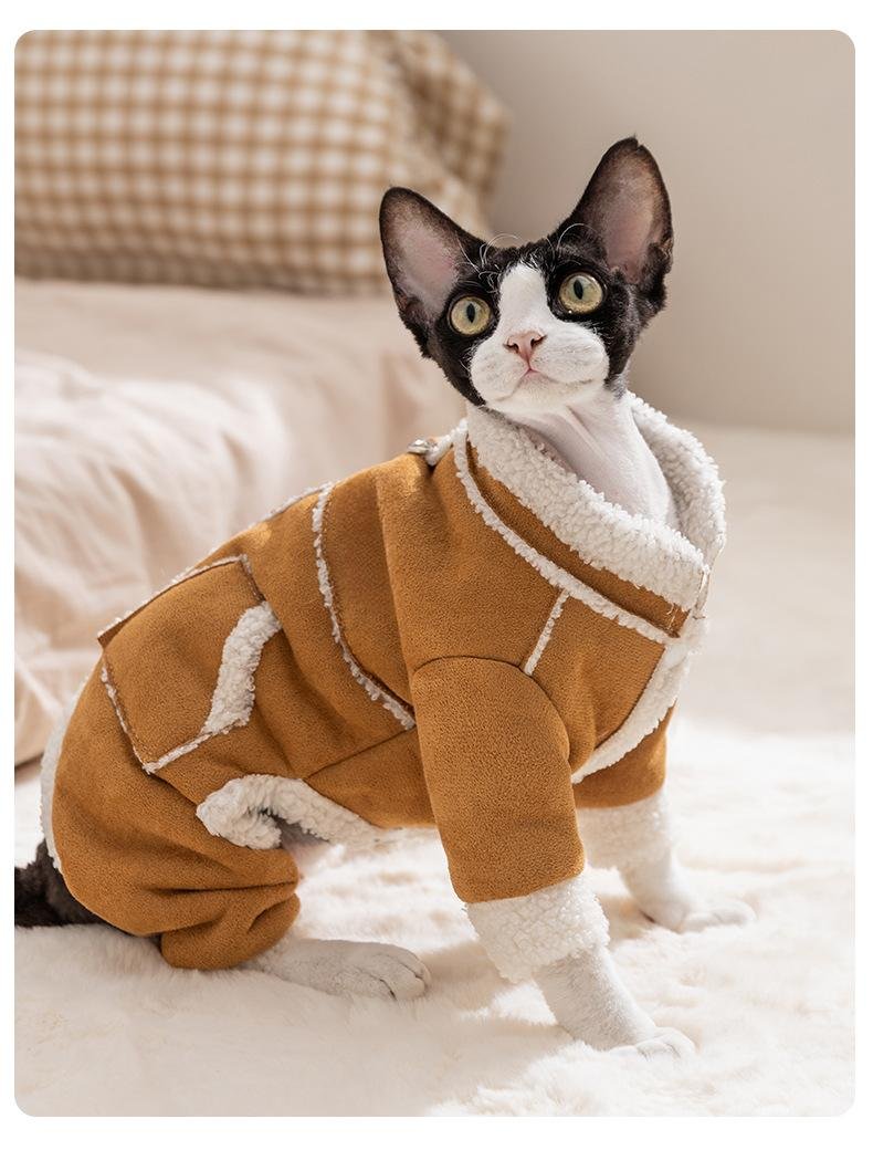 Autumn & Winter Thickened Warm Faux Suede 4-Legged Cotton Padded Pet Apparel for Kittens and Puppies