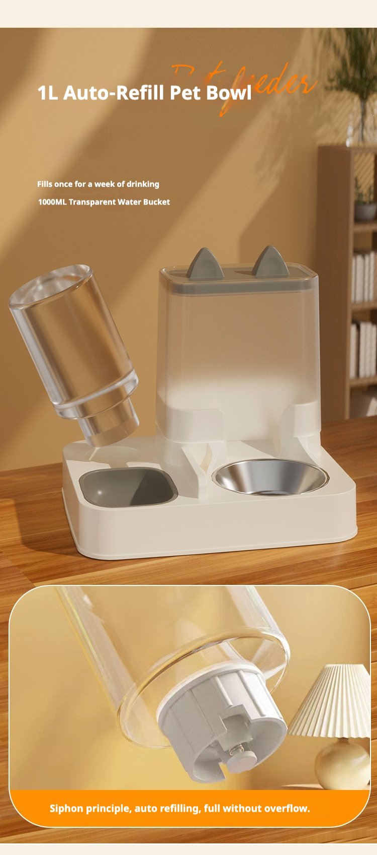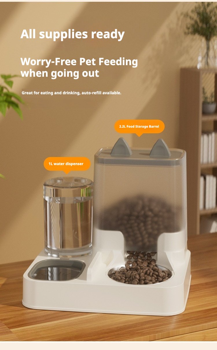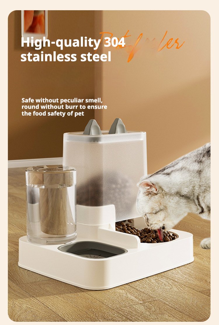 Minimalist Cat Ear Pet Feeder & Water Dispenser, Large-Capacity Automatic Water Bowl for Cats & Dogs, Anti-Spill Pet Drinking Fountain