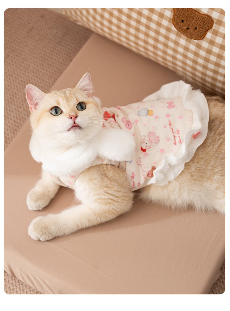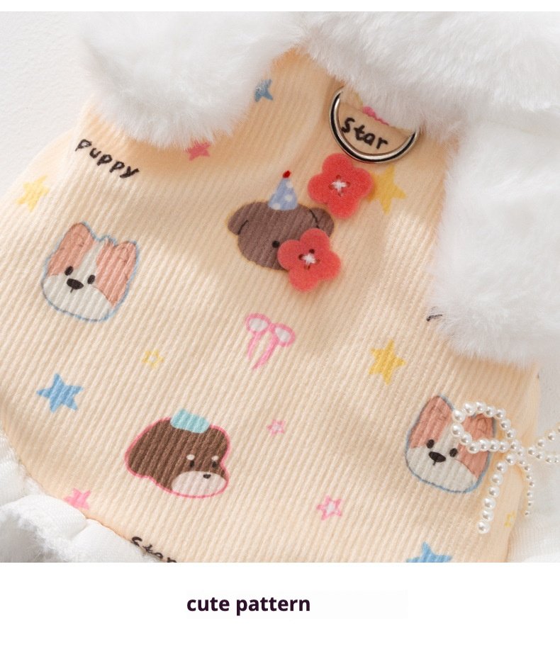 Princess-Style Rabbit Ear Harness Dress, Thickened Warm Pet Winter Apparel