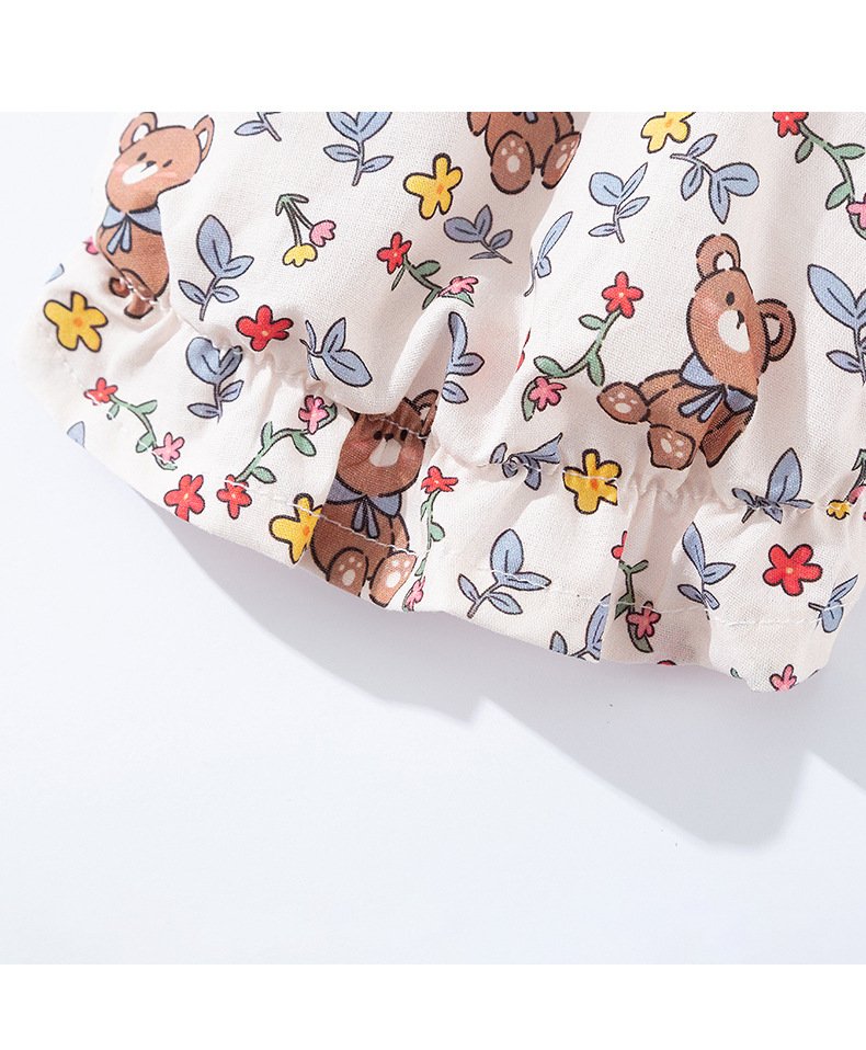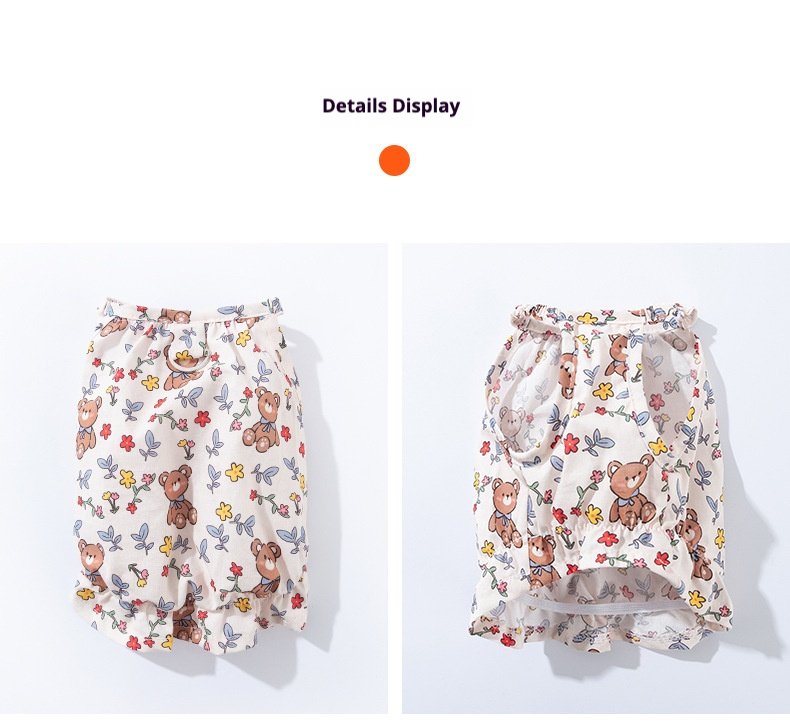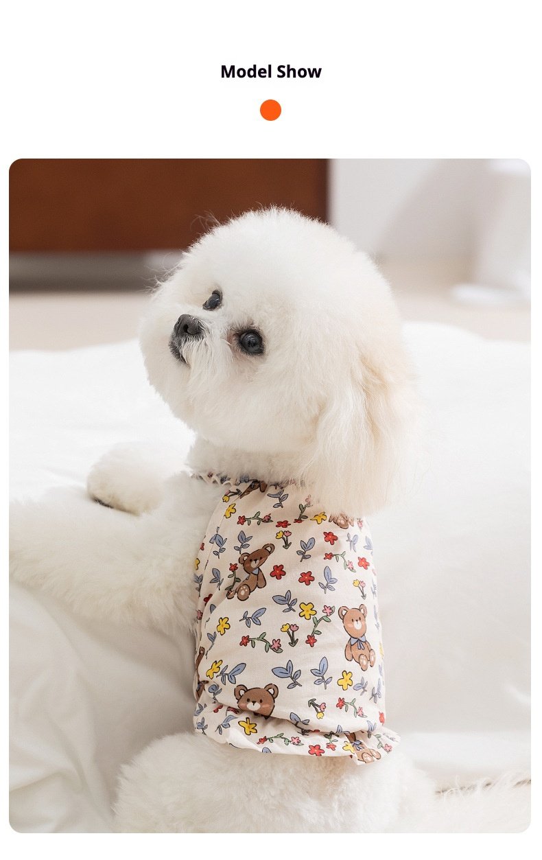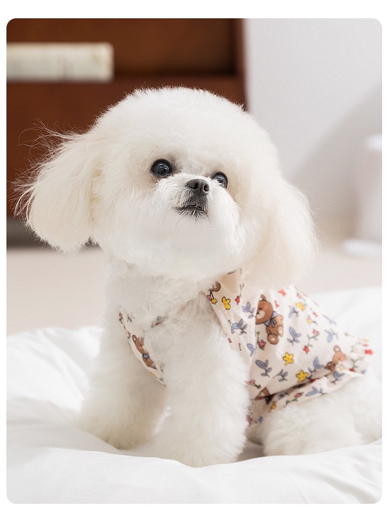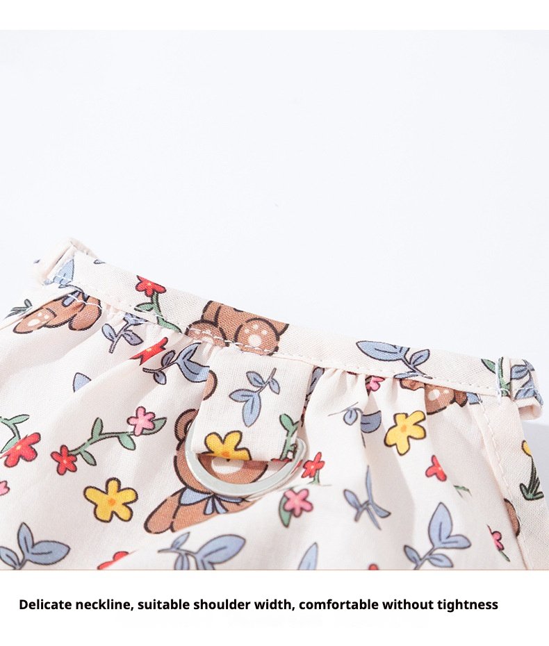 Spring & Summer Pet Dress for Cats & Dogs, Cute All-Over Bear & Floral Print with Pumpkin Pendant