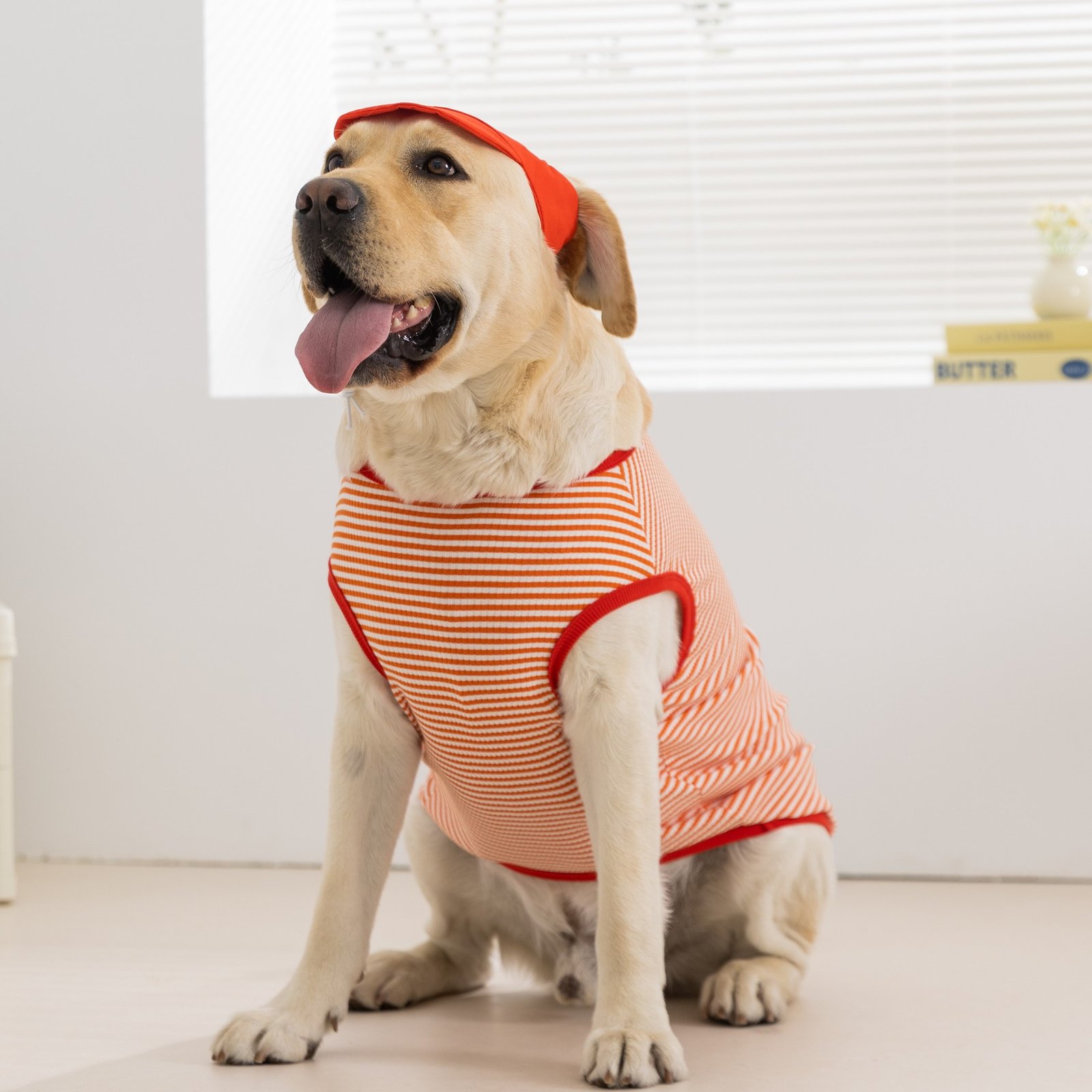 Spring & Summer Striped Lightweight Hooded Vest Set for Large Dog Breeds (Golden Retriever, Labrador Retriever)