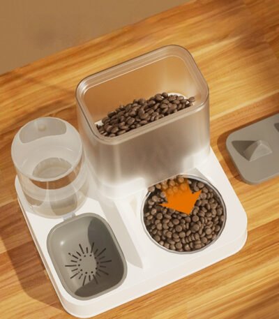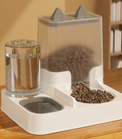 2-in-1 Cat & Dog Double Bowl with Automatic Water Dispenser, Anti-Spill Slow Feeder Food & Water Bowl Combo