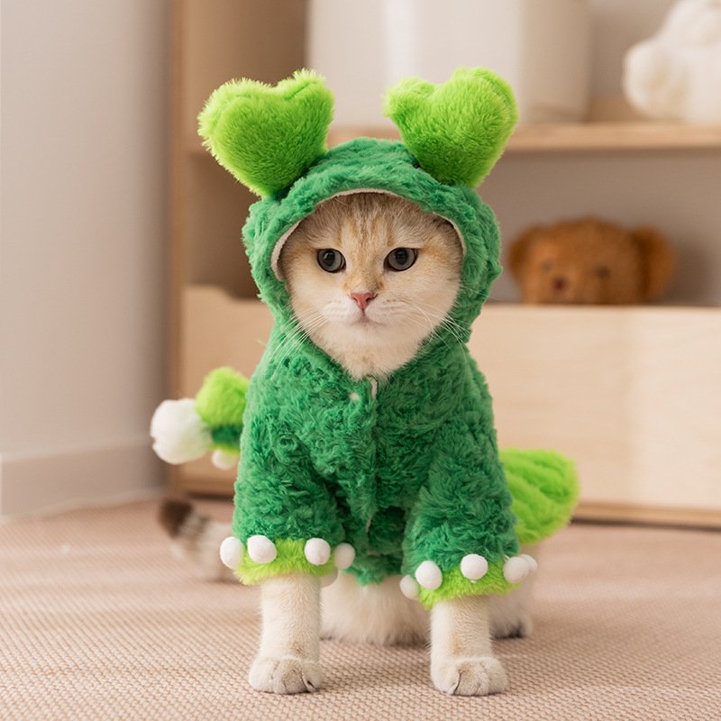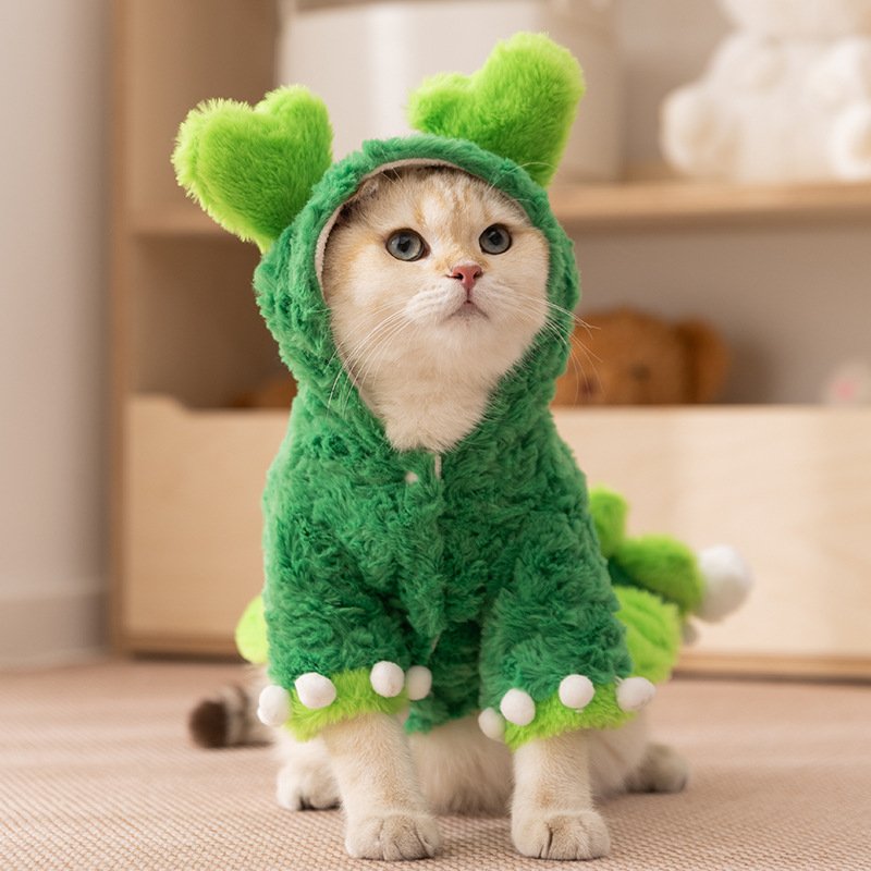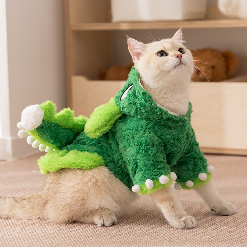 Autumn & Winter Faux Rabbit Fur Dinosaur Costume, Halloween Funny Pet Apparel for Cats and Dogs