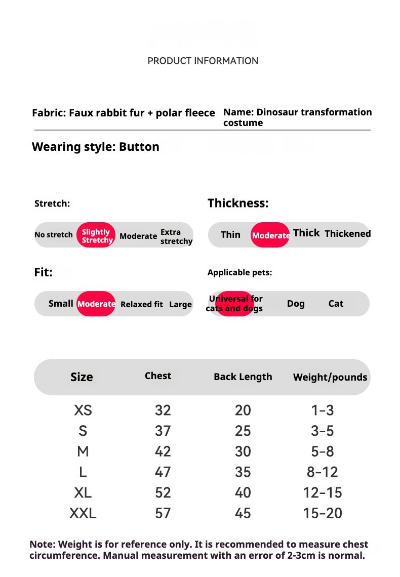 Be the first to review “Autumn & Winter Faux Rabbit Fur Dinosaur Costume, Halloween Funny Pet Apparel for Cats and Dogs” Cancel reply