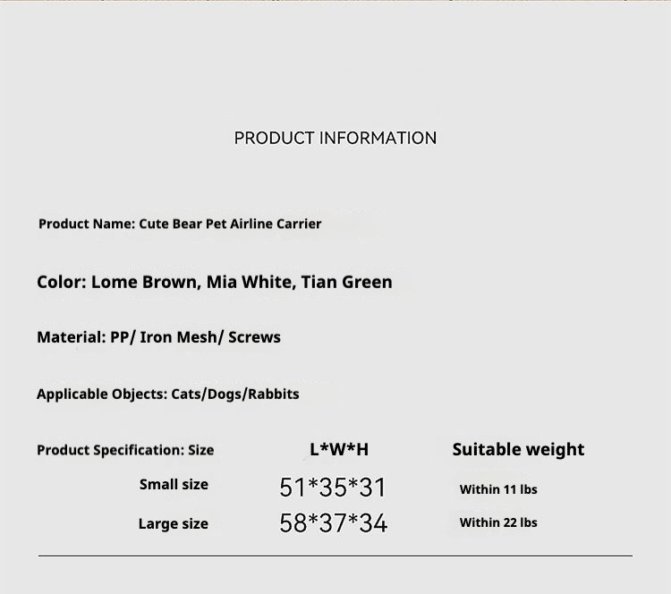 Be the first to review “Cute Bear Pet Airline Carrier, Portable Travel Crate for Cats & Dogs, Breathable Large-Capacity Pet Transport Bag” Cancel reply