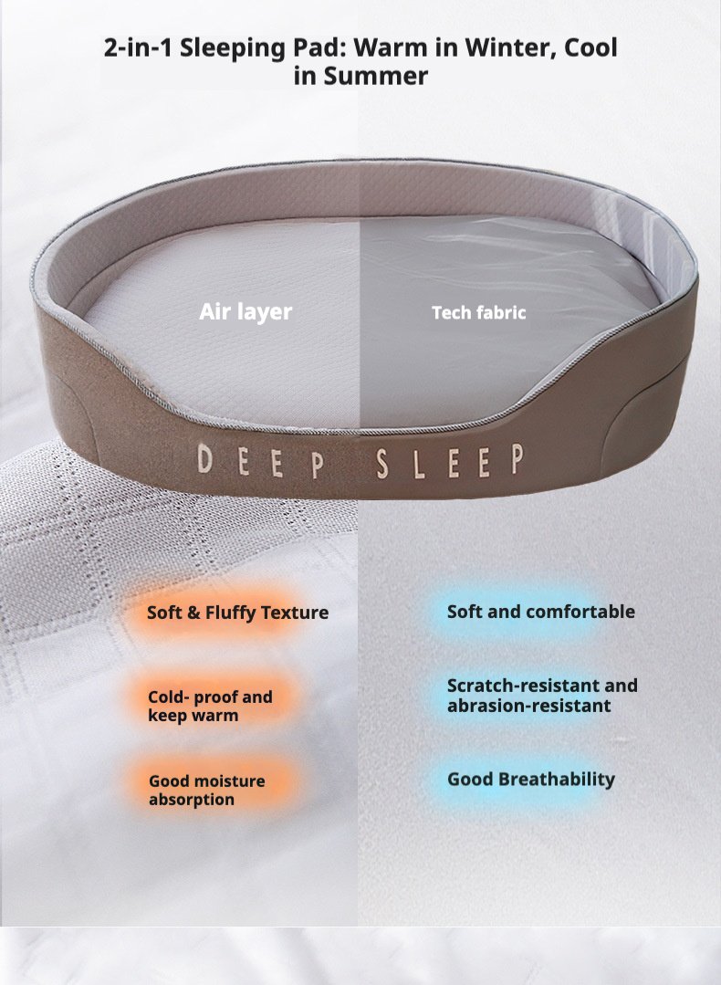 Dog Bed with High-Density Sponge for Deep Sleep, All-Season Cooling & Warm Pet Bed Mat for Medium & Large Dogs