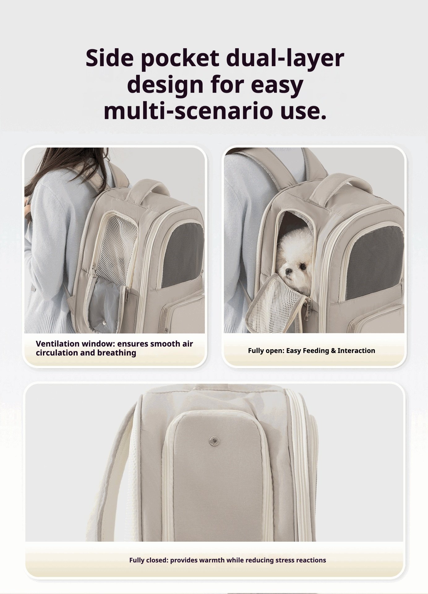 Ins-Style Pet Backpack Carrier, Cotton Warmth Spacious Breathable Dog & Cat Carrier, Portable Travel Bag for Outdoor Use