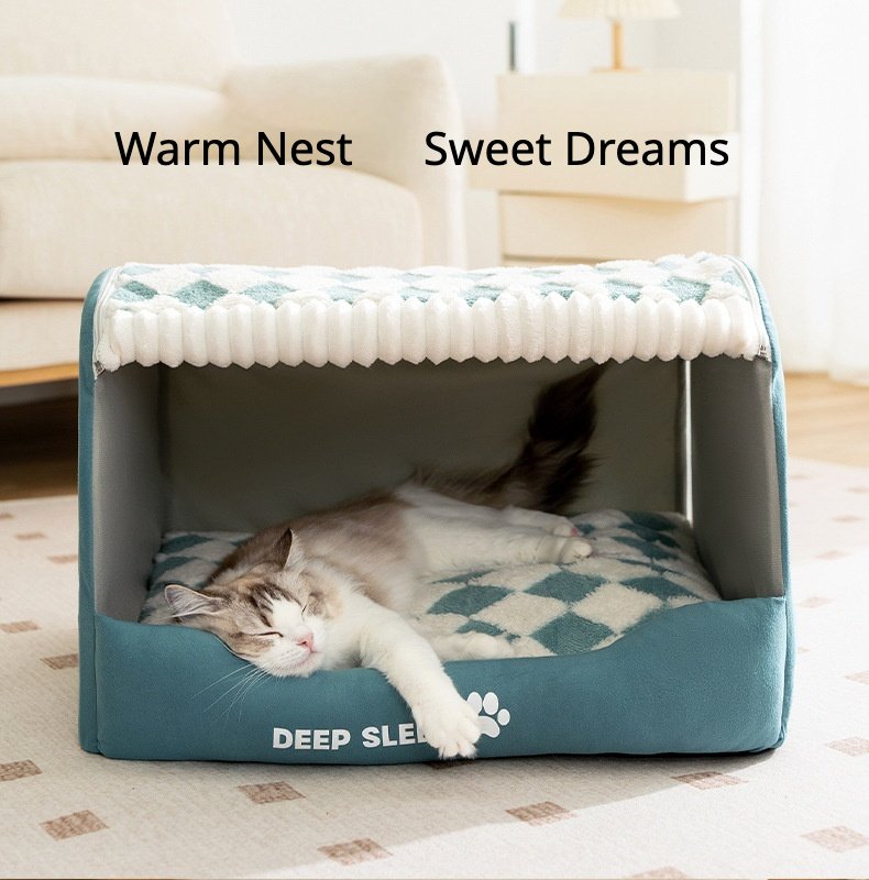 New Arrival Pet Bed with Drawer, Spacious Semi-Enclosed Cat & Dog Bed for Winter Warmth