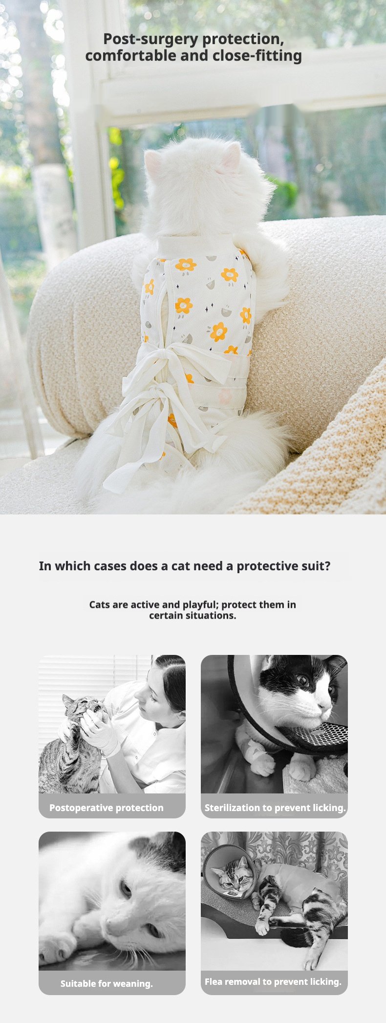 New Arrival Summer Lightweight Cat Recovery Suit, Anti-Licking Pet Apparel for Cats & Small Dogs