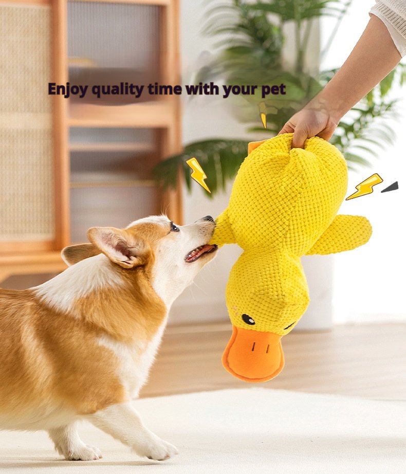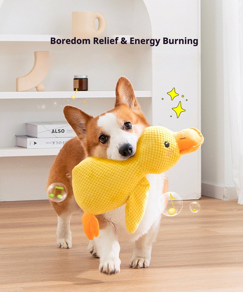 Pet Dog Chew Toys, Boredom Relief Squeaky Yellow Duck Plush Toy, Self-Play Interactive Toys for Small & Large Dogs
