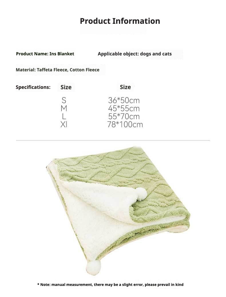 Solid Color Ins-Style Pet Blanket, Thick Flannel Warm Mat for Cats & Dogs, Cozy Sleeping Pad for Dog Beds