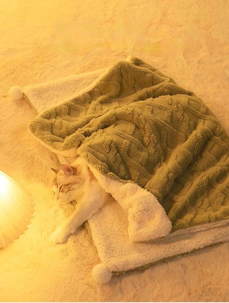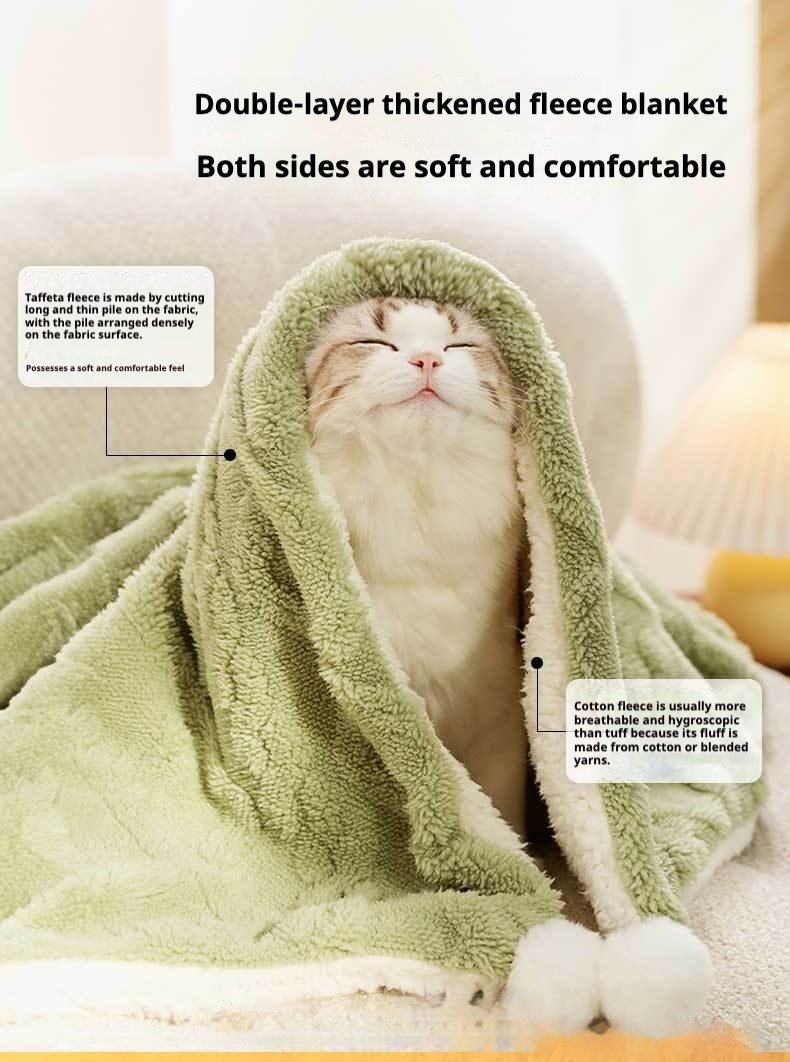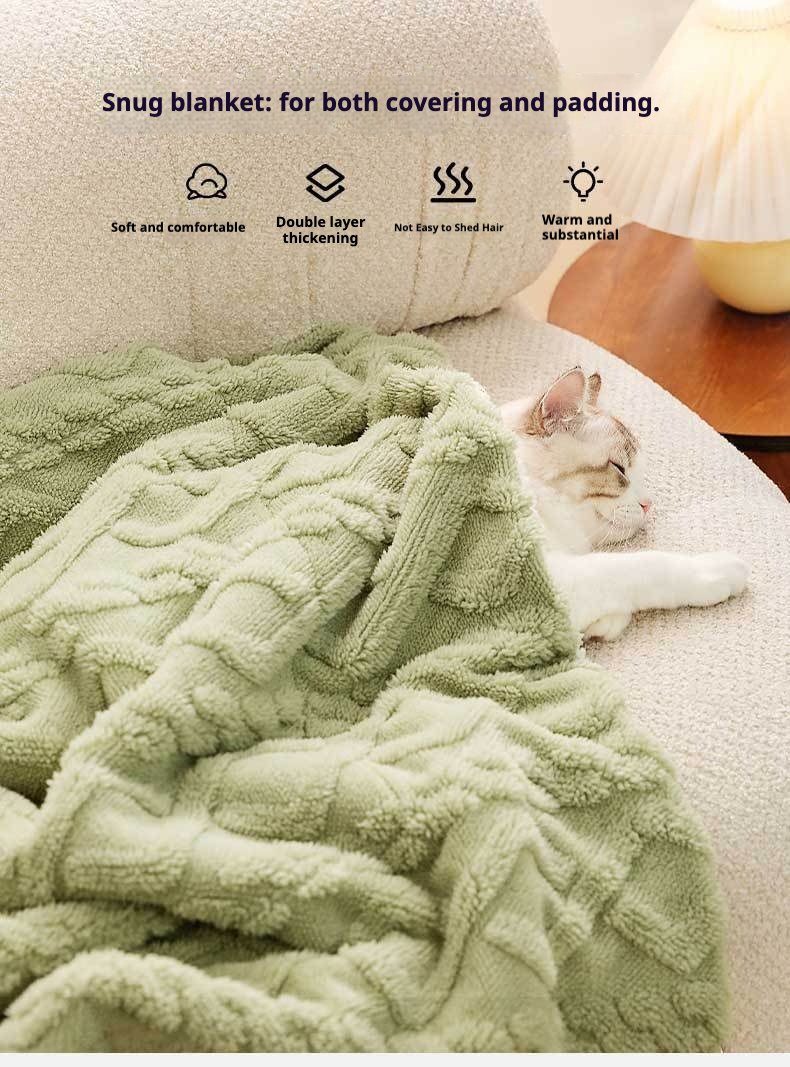 Solid Color Ins-Style Pet Blanket, Thick Flannel Warm Mat for Cats & Dogs, Cozy Sleeping Pad for Dog Beds